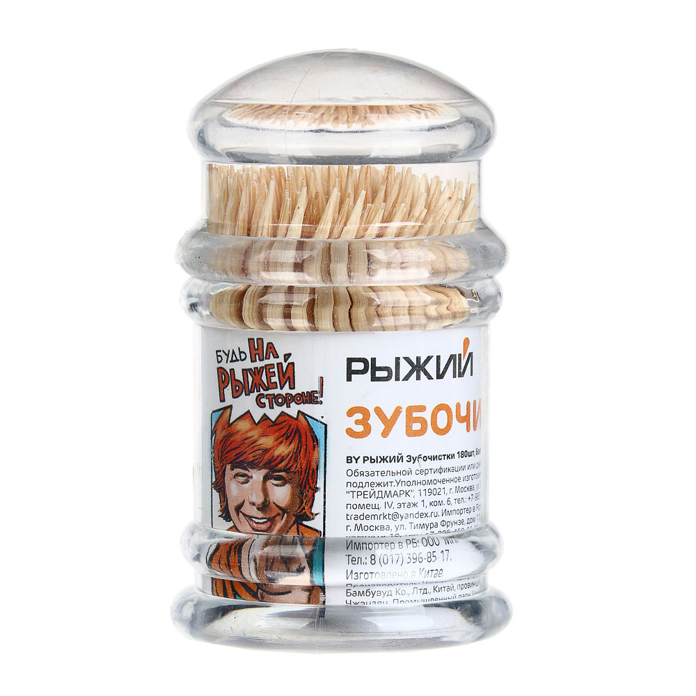 РЫЖИЙ Зубочистки 180шт, бамбук, акриловая упаковка