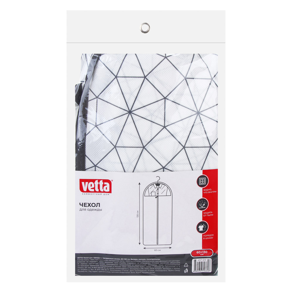 VETTA Чехол для одежды, с прозрачным окном, 60х130см, Валери, молния, полипропилен
