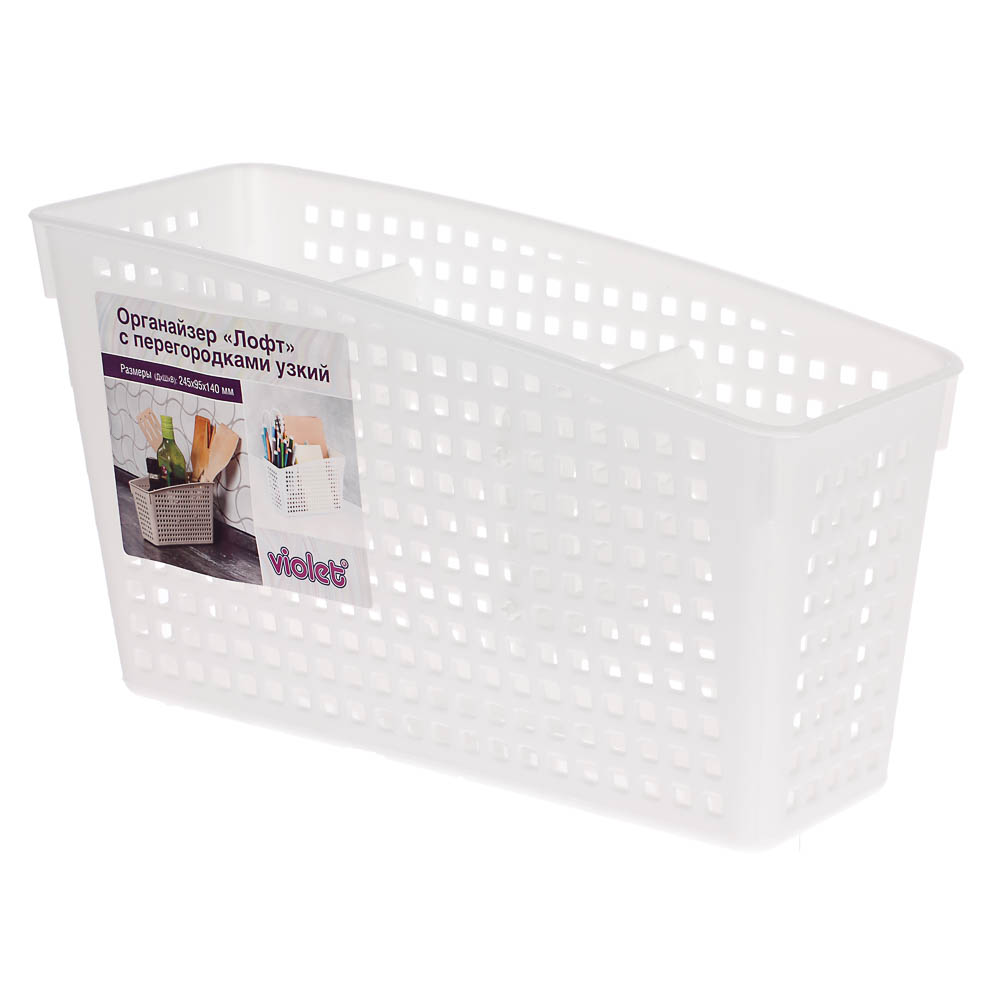 Органайзер Лофт с перегородками 24,5х9,5х14 см (3 отделения) узкий — компактный и функциональный аксессуар для идеального порядка в ограниченном пространстве. Его узкая форма позволяет разместить органайзер на узких полках, в шкафчиках, на столе или в ящиках, эффективно используя каждый сантиметр. Три прочных перегородки создают отдельные секции для аккуратного хранения мелочей: косметики, канцелярии, гаджетов, инструментов или бытовых предметов. Изготовлен из прочного материала, устойчивого к влаге и нагрузкам, что гарантирует долговечность использования.