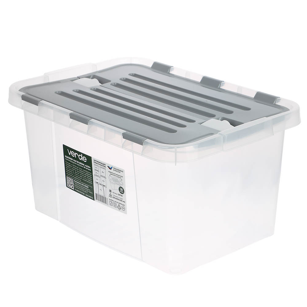Контейнер для хранения VERDE объемом 18 литров – это практичное и надежное решение для организации пространства в любом помещении. Изготовленный из высококачественного пищевого полипропилена, он обеспечивает безопасное хранение как продуктов питания, так и различных бытовых предметов. Благодаря продуманной конструкции с крышкой и содержимое надежно защищено от пыли и влаги. Прозрачные стенки контейнера позволяют легко увидеть его содержимое без необходимости открывания, что значительно упрощает поиск нужных вещей.Размеры контейнера 43,3x29,8x22,10 см делают его универсальным решением для хранения. Он идеально подходит для организации пространства на кухне, в кладовой, детской комнате или гараже.