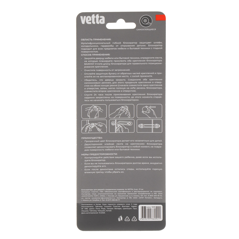 VETTA Блокираторы для дверей и выдвижных ящиков 2шт, гибкий, 17см
