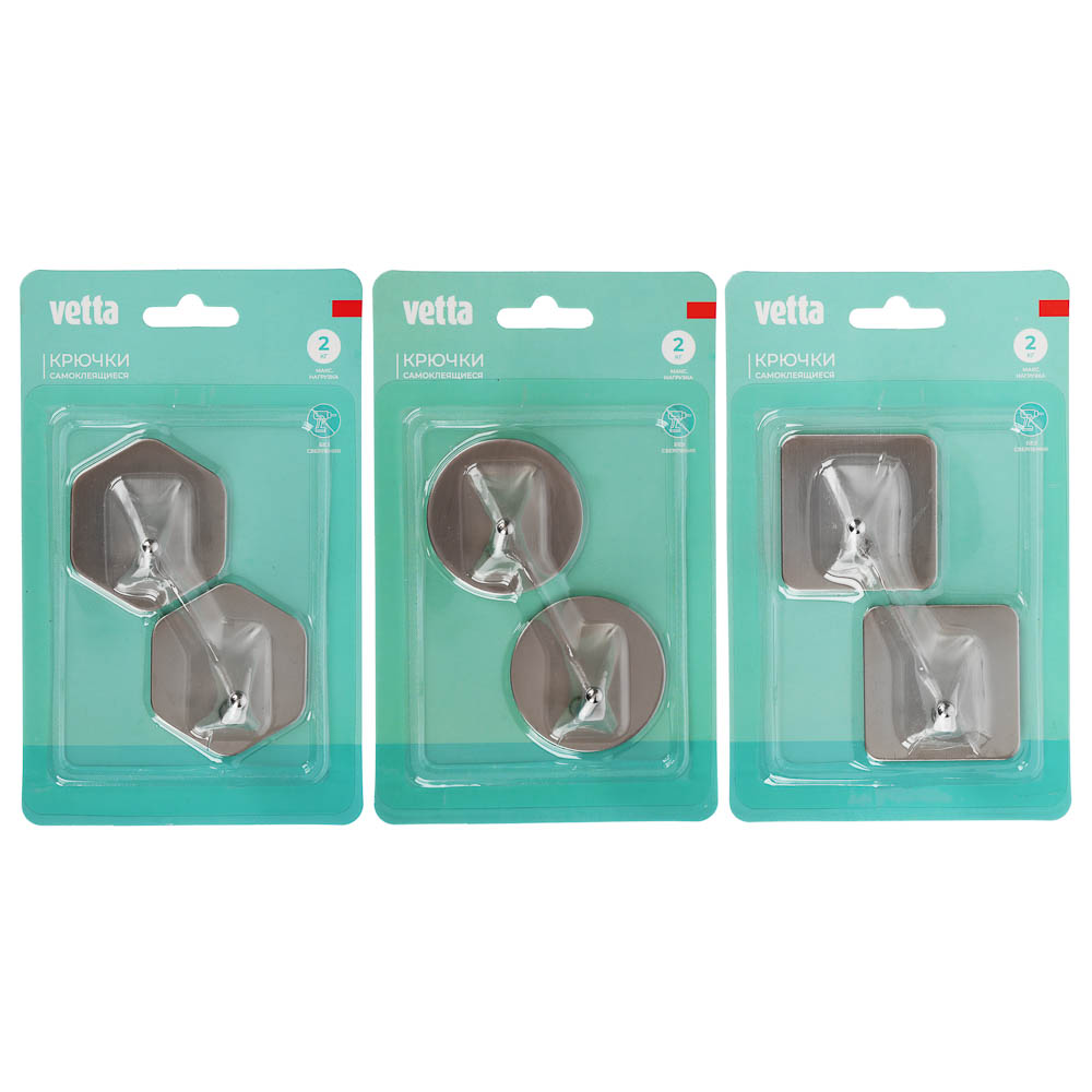 VETTA Крючки самоклеящиеся, 2шт, 4,5x4,5см, нерж.сталь 201, 3 дизайна