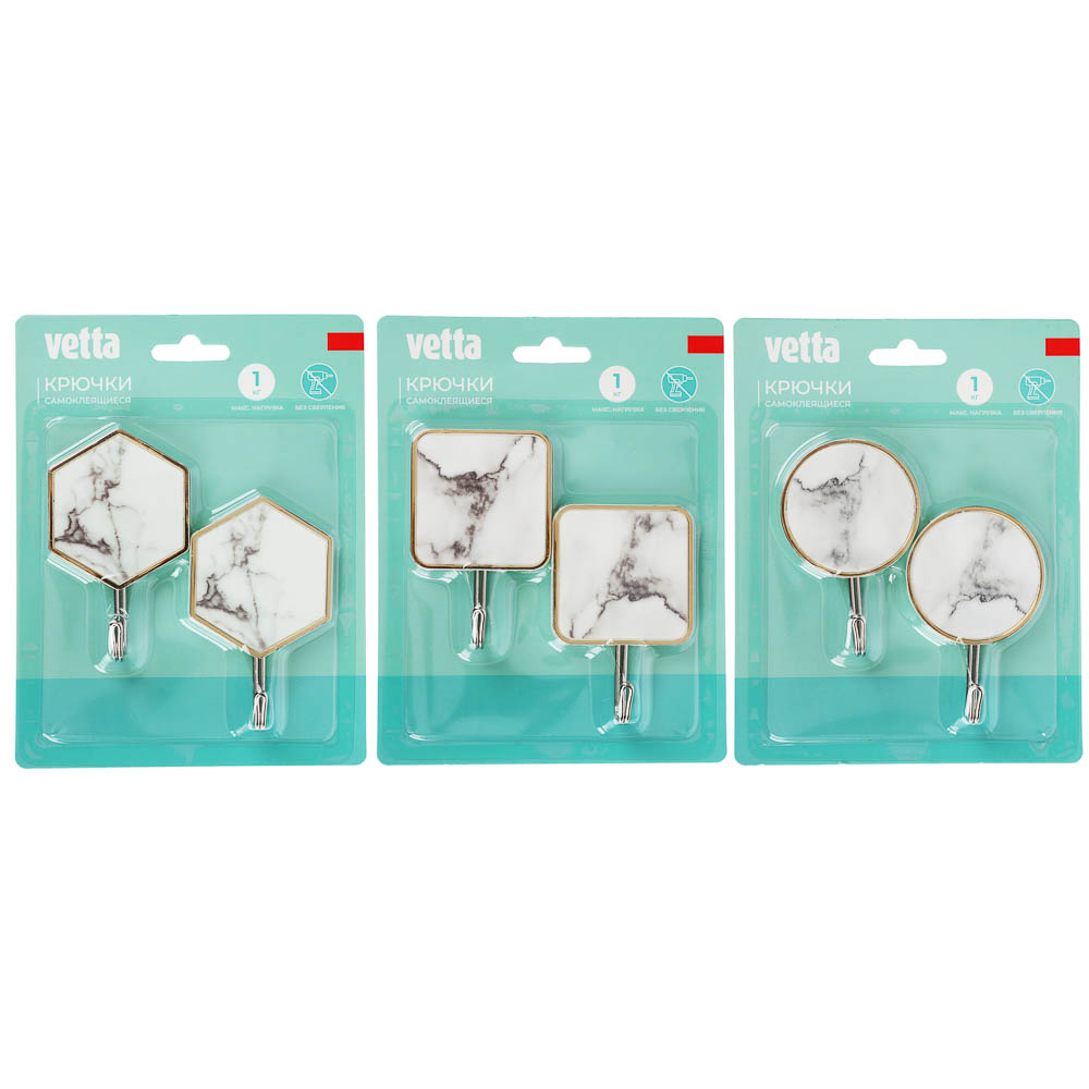 VETTA Крючки самоклеящиеся, "Белый мрамор", 2 шт, пластик, металл