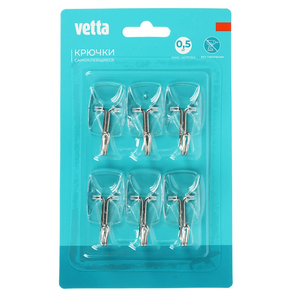 VETTA Крючки самоклеящиеся, прозрачные, 6шт, PS, металл