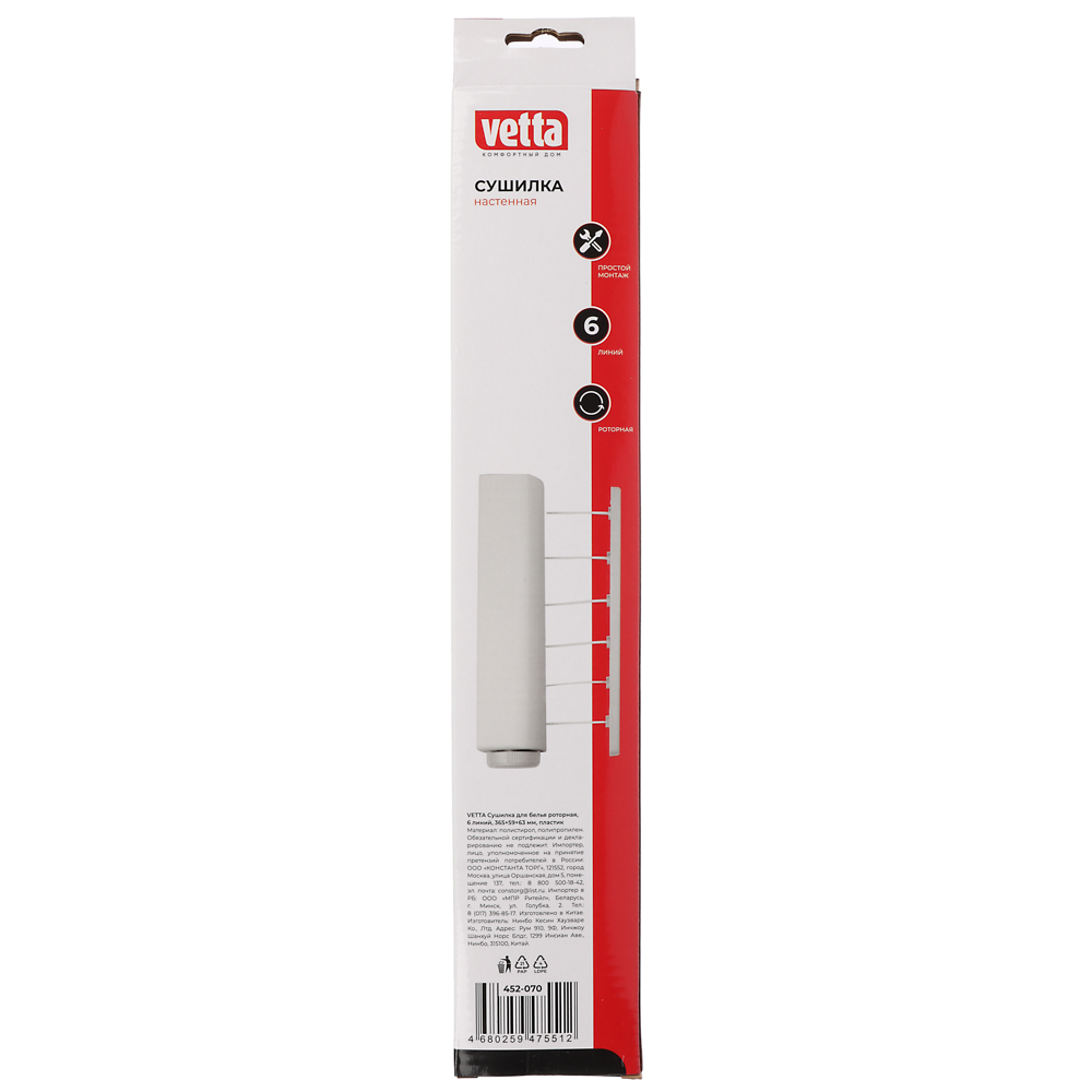 VETTA Сушилка для белья роторная 6 линий, 365х59х63мм, пластик