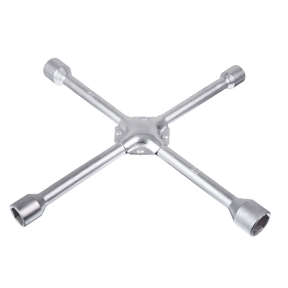 ЕРМАК Ключ баллонный крестовой 14",17x19x21x23 мм, усиленный, сатин- это инструмент, который обязательно должен быть у водителя на случай вынужденной смены колеса в дороге. Также ключ применяется в автомастерских. Инструмент выполнен из прочной стали, имеет крестообразную форму.