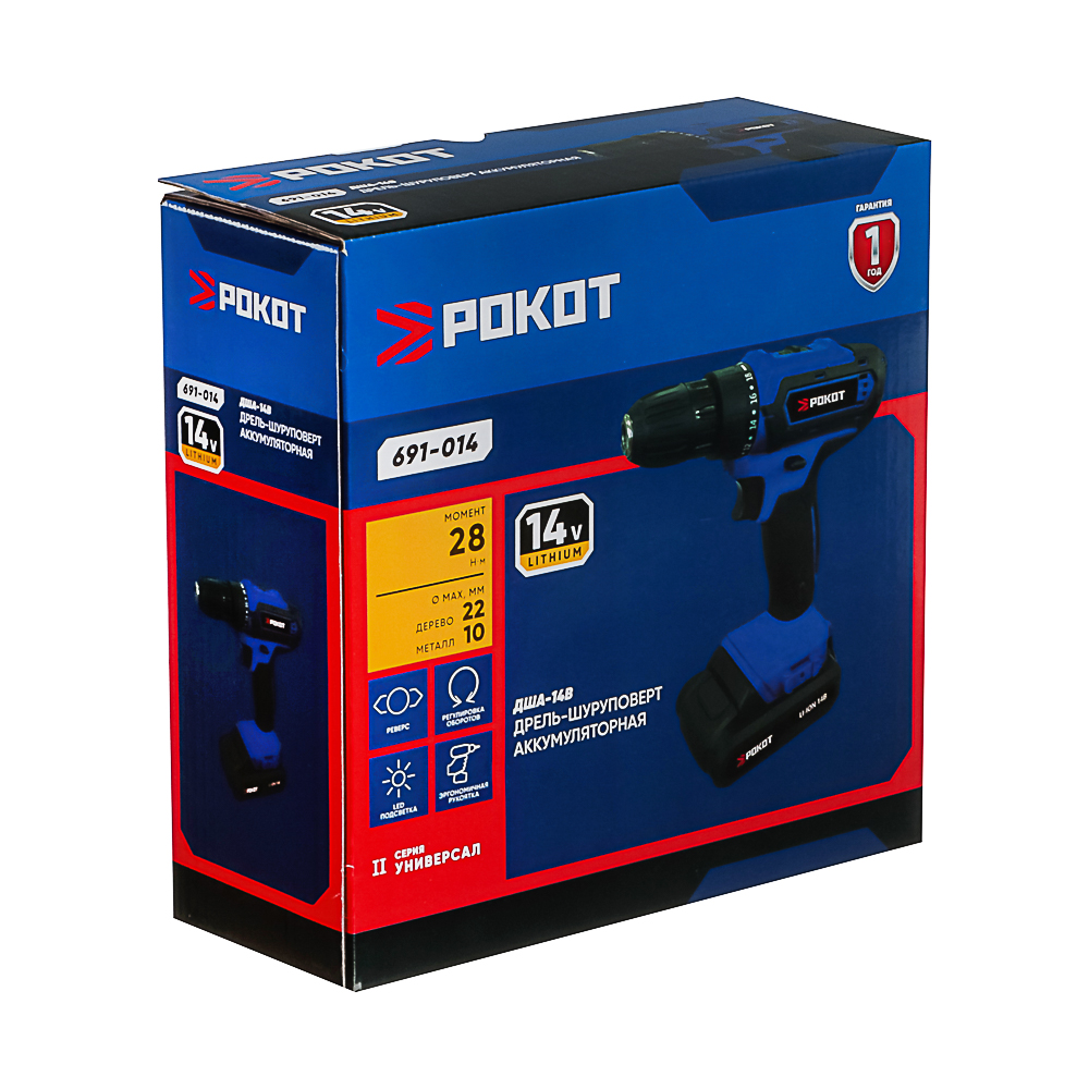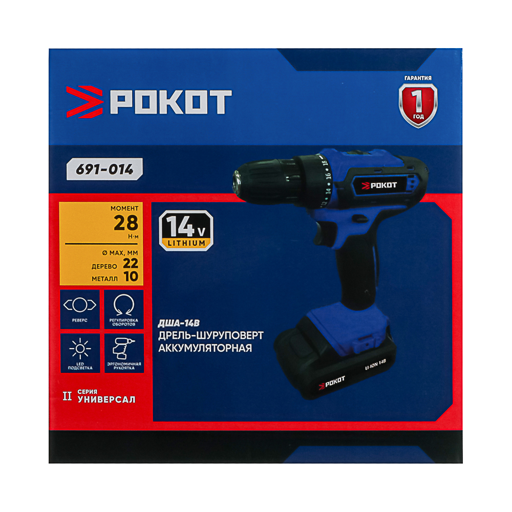 РОКОТ Дрель-шуруповерт аккум. ДША-14в, 0-550-1550 об/мин, 1,3 Li-on (1), 28 н*м