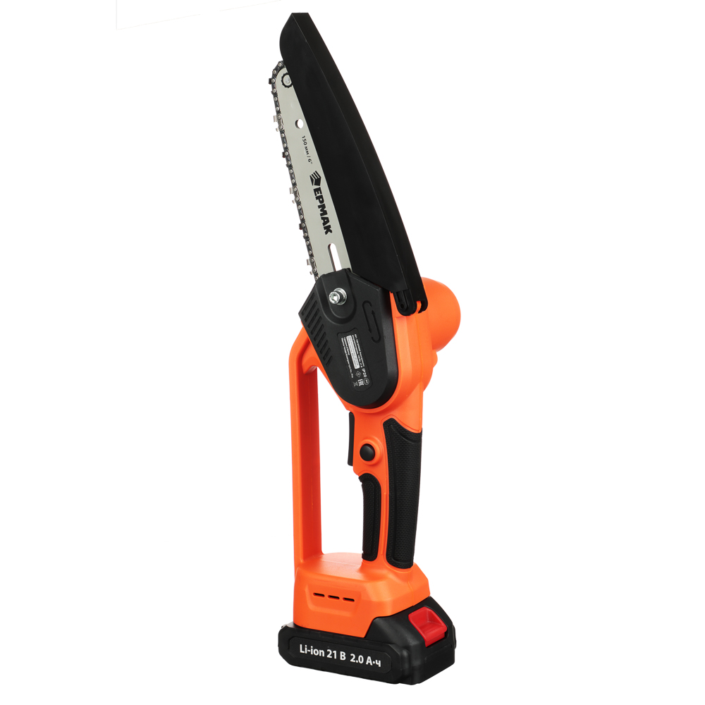 ЕРМАК Электропила аккумуляторная, 1АКБ, шина 150мм, бесщеточная, пластик.кейс, 2.0А*ч Li-ion