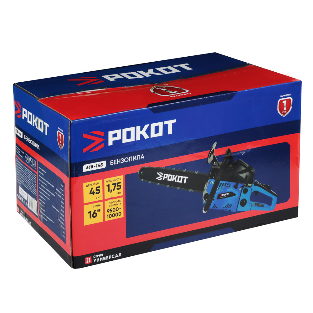 РОКОТ Бензопила 45см3, 1,75кВт, шина 16" (40см) 0,325* 64 звена