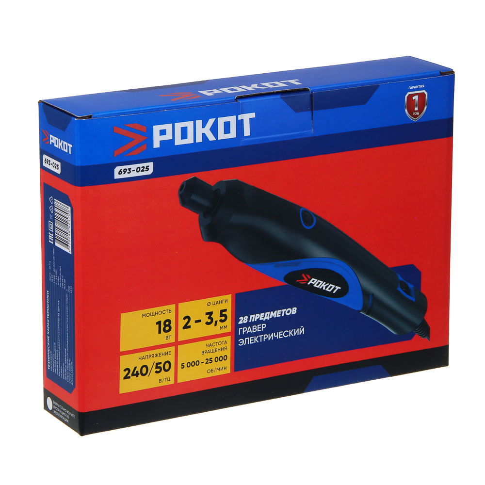 РОКОТ Гравёр электрический, 18Вт, 22000 об*мин, набор аксессуаров 24 предмета
