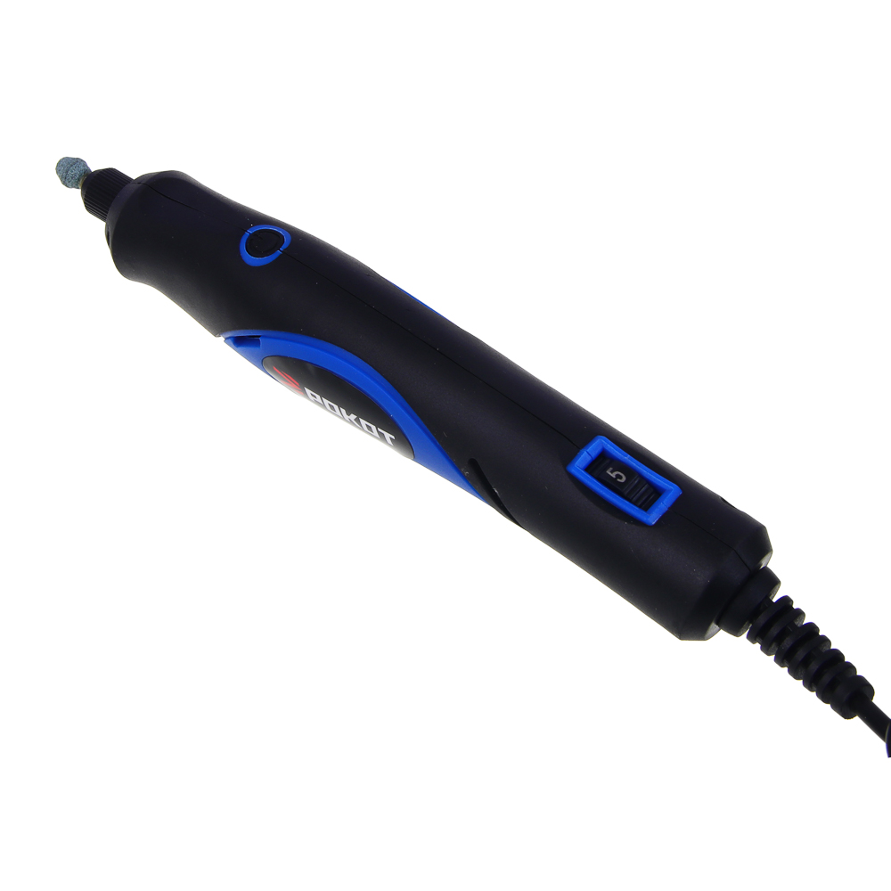 Электрический гравёр РОКОТ — это компактный и удобный инструмент, предназначенный для выполнения тонких работ, таких как гравировка, шлифовка, полировка и сверление. С его помощью можно работать с различными материалами, включая металл, дерево, пластик и стекло. Гравёр оснащён двигателем мощностью 18 Вт и фиксированной частотой вращения шпинделя до 25000 об/мин, что обеспечивает высокую точность и аккуратность при выполнении работ. В комплект входит 24 аксессуара, что делает этот набор идеальным для домашнего использования и небольших проектов.