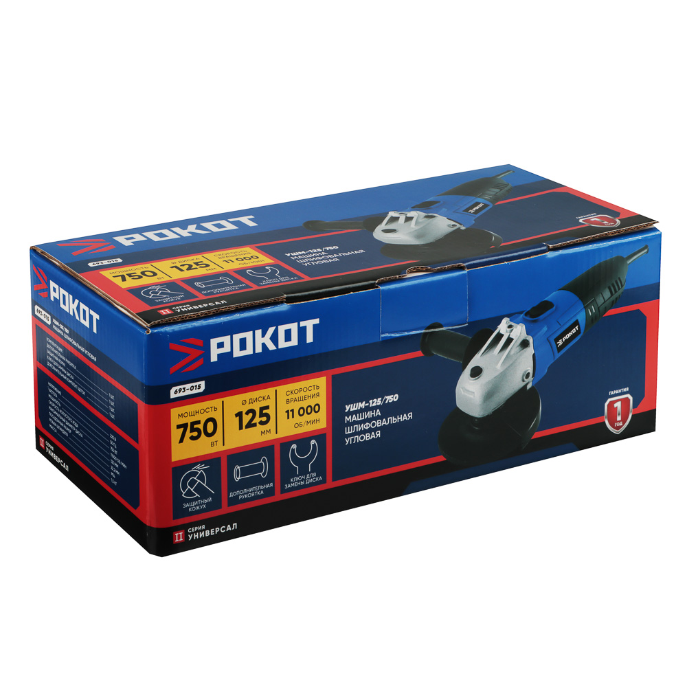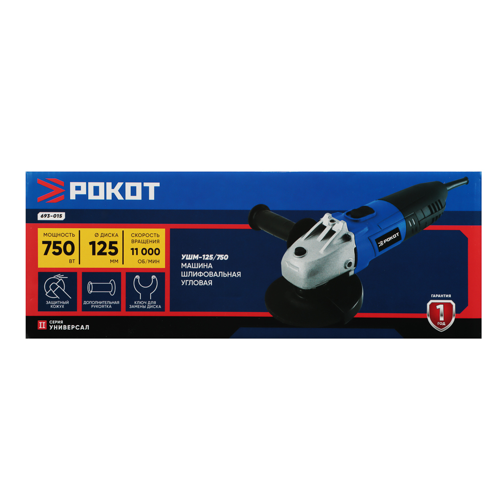 Угловая шлифовальная машина РОКОТ УШМ-125/750 — компактный и удобный инструмент для резки, зачистки и шлифования различных материалов. Модель подходит для бытовых и ремонтных работ, работы в гараже, мастерской или на строительной площадке. Благодаря мощности 750 Вт и скорости вращения до 11 000 об/мин инструмент обеспечивает эффективную обработку металла, а при использовании соответствующих дисков — камня, плитки и других материалов. Машина рассчитана на использование дисков диаметром 125 мм — одного из самых популярных и универсальных размеров.