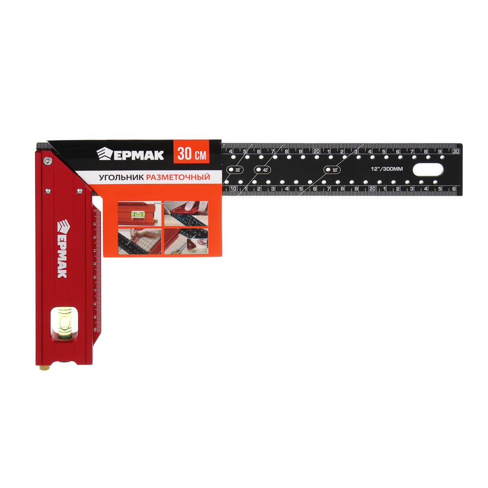 Угольник разметочный 30см тм ЕРМАК, с отверстиями для разметки(интервал 5мм) и пузырьковым уровнем