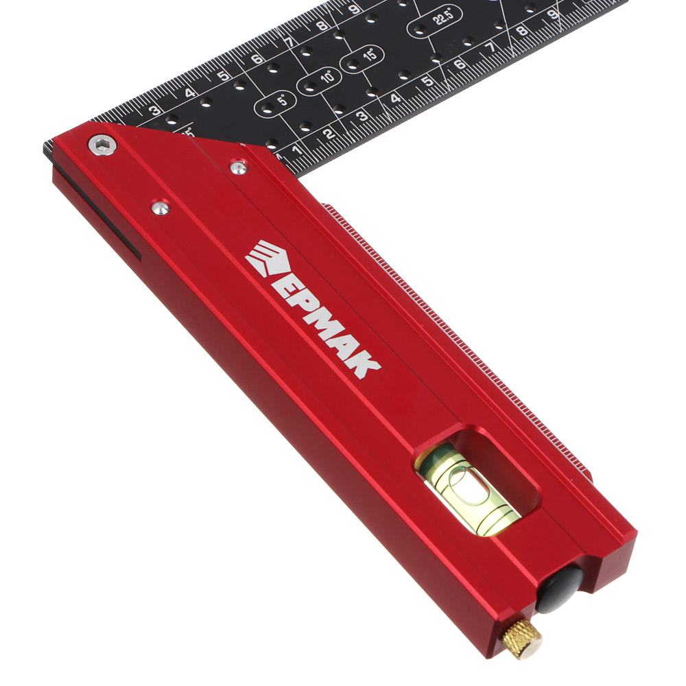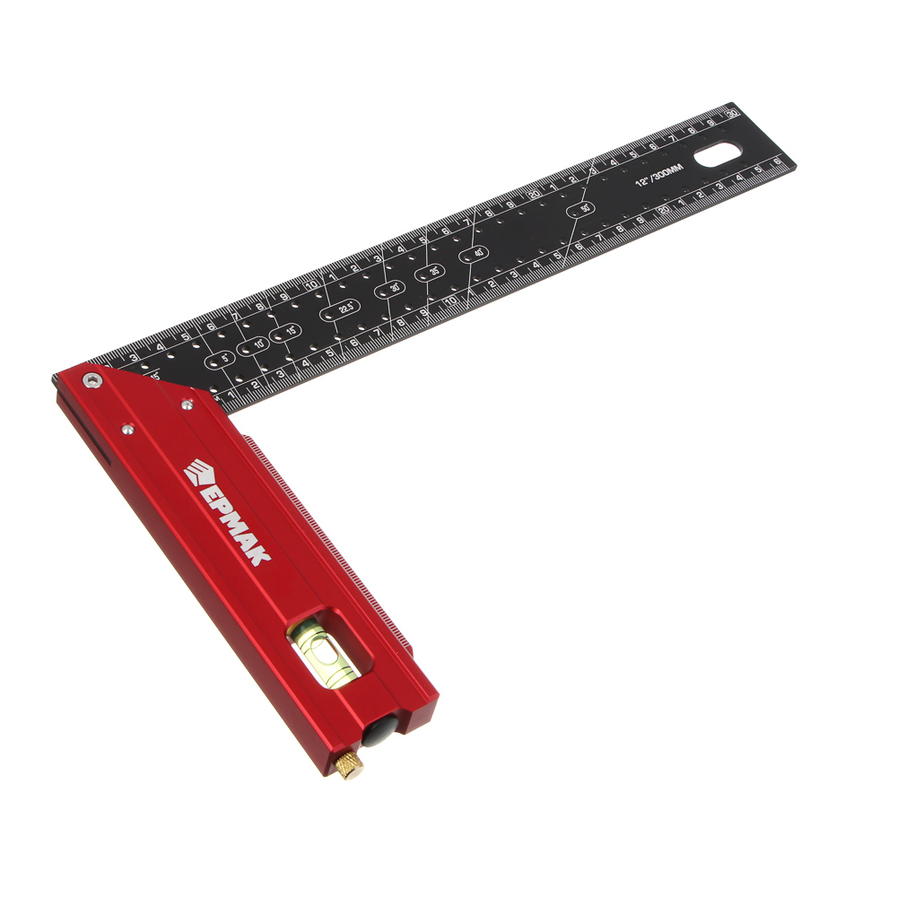 Угольник разметочный ЕРМАК, 30 см — универсальный инструмент для точной разметки, измерения и проверки углов. Конструкция оснащена отверстиями для разметки с шагом 5 мм, что позволяет быстро и точно переносить размеры на поверхность материала. Встроенный пузырьковый уровень обеспечивает удобную проверку горизонтальности и вертикальности при работе с деревом, металлом, гипсокартоном и другими материалами. Угольник компактного размера удобен для работы в ограниченном пространстве и подходит как для профессионального использования, так и для бытовых ремонтных и столярных задач.