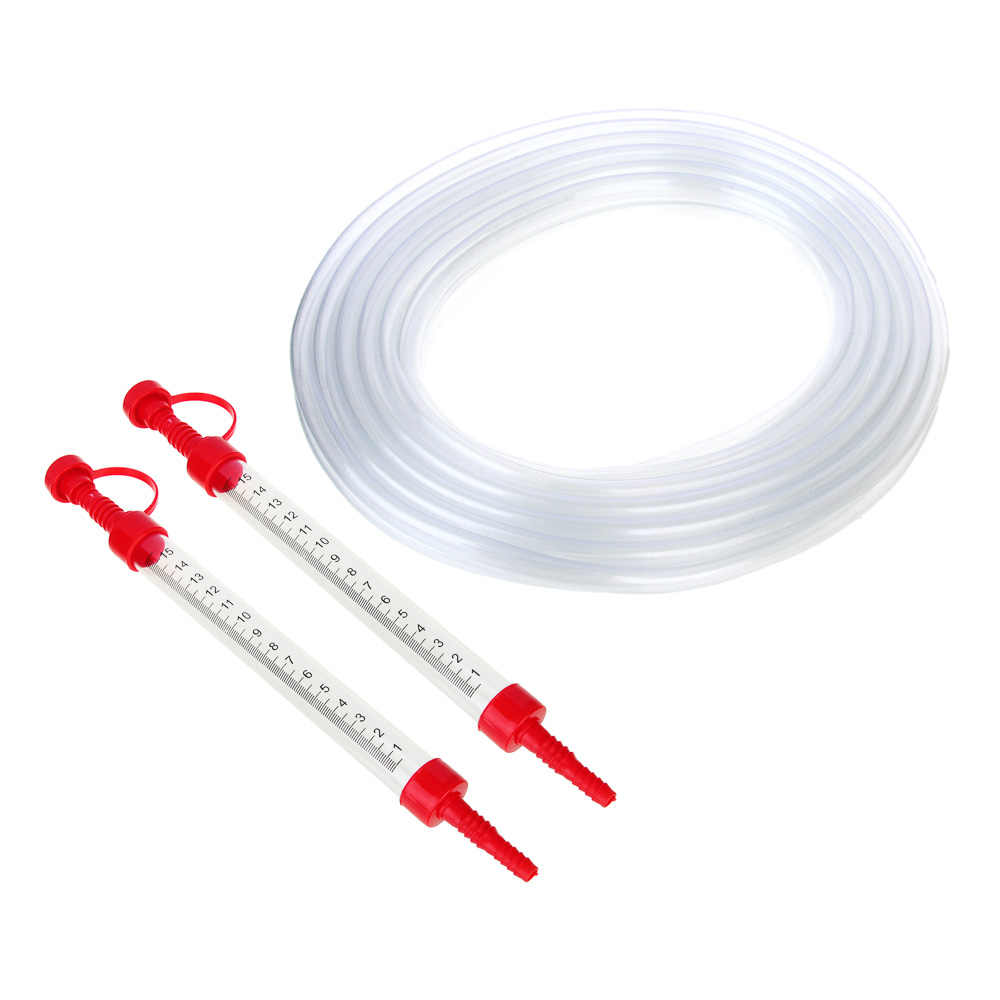 Строительный гидроуровень незаменим при строительстве зданий, закладке фундаментов, а также при монтаже конструкций. Общая длина составляет 10 метров. Гидроуровень оснащен шкалой, работает согласно принципу сообщающихся сосудов. Прибор состоит из 2 пластиковых колб и длинного шланга, который удобно использовать при возведении габаритных строительных и хозяйственных конструкций. С его помощью удобно наносить и проверять засечки в горизонтальной плоскости.