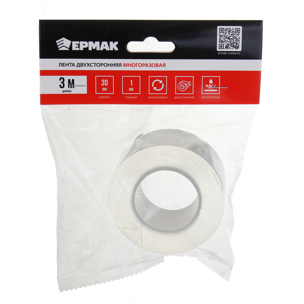 ЕРМАК Лента двухсторонняя, многоразовая 3м, 30мм