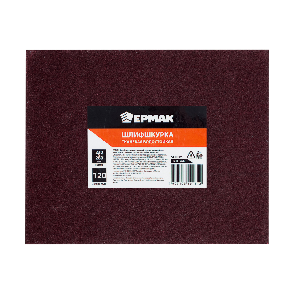 ЕРМАК Шлиф-шкурка на тканевой основе водостойкая 230x280 №120 (цена за 1 лист, в спайке 50 листов)