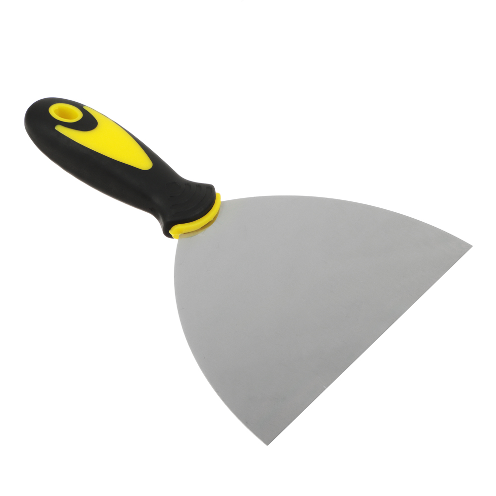 Фасадный шпатель с двухкомпонентной рукояткой предназначен для отделки поверхностей внутри и снаружи помещений. Используется для нанесения и выравнивания по поверхностям штукатурки, шпатлевки и других строительных растворов, заделки трещин и швов. Фасадный шпатель оснащен эргономичной пластмассовой ручкой, с рифлением, которая обеспечивает надежный хват инструмента при использовании, в том числе, в грубых строительных перчатках.