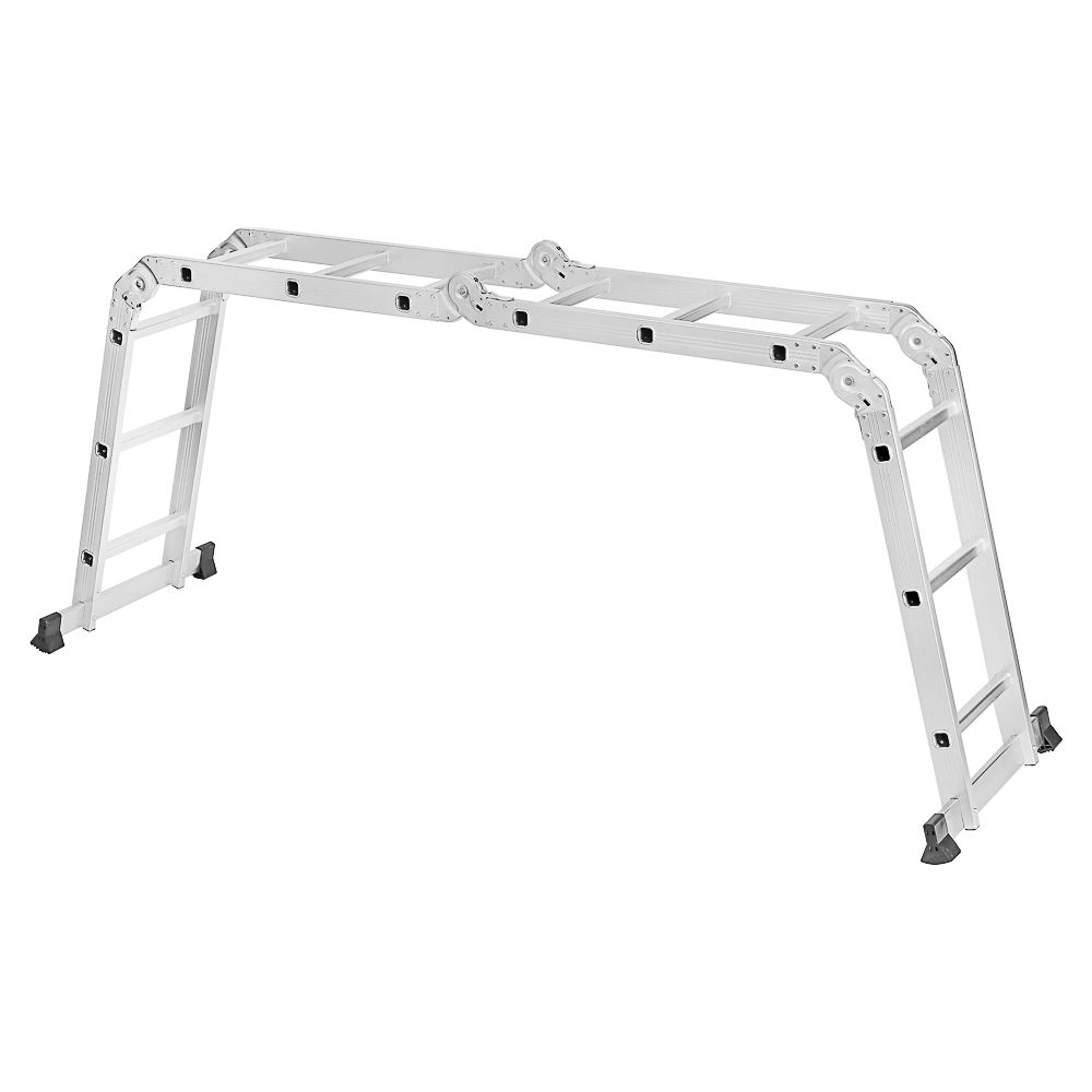 Лестница-трансформер "ЕРМАК" – это многофункциональное и надежное решение для выполнения различных задач на высоте. Изготовленная из прочного алюминия с толщиной профиля 1,2 мм, лестница сочетает в себе легкость, долговечность и устойчивость к коррозии, что делает ее идеальной для использования в быту, на даче или на строительной площадке. Лестница состоит из 4 секций, каждая из которых включает 3 ступени, что позволяет трансформировать ее в различные конфигурации: приставную лестницу, стремянку, платформу или двухстороннюю лестницу. Такая универсальность делает ее незаменимым инструментом для широкого круга задач. Максимальная нагрузка - 150 кг.