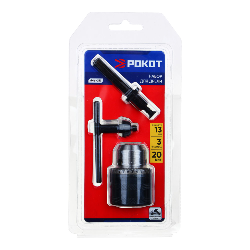 РОКОТ Набор для дрели 3 пр. (патрон ключевой 13мм 20UNF, ключ для патрона, переходник SDSplus - 20 U