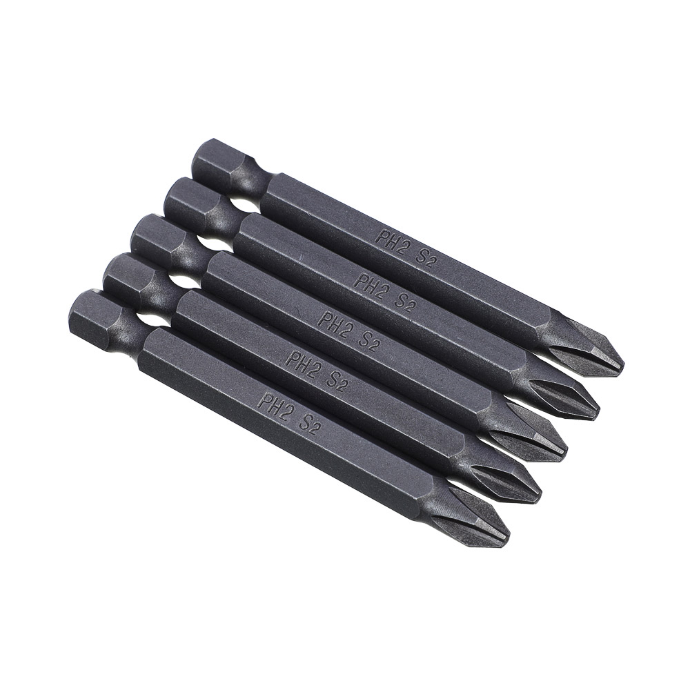 Биты для шуруповерта ЕРМАК PH2х65 мм – это набор из пяти удлиненных бит для монтажных и демонтажных работ. Подходят как для бытового, так и для профессионального применения. Изделия выполнены из высококачественной комплексно-легированной стали S2, имеющей повышенную твердость, а также улучшенные механические и антикоррозионные свойства, благодаря которым биты имеют высокий ресурс службы и выдерживают интенсивную эксплуатацию, исключая деформацию и поломку.
