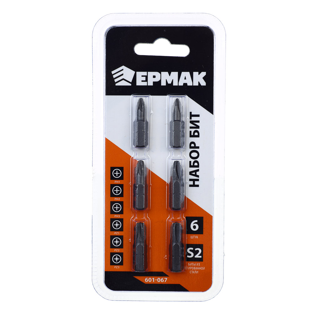 ЕРМАК Биты для шуруповерта, набор 6 предметов, блистер, длина 25 мм, в наборе PH; PZ
