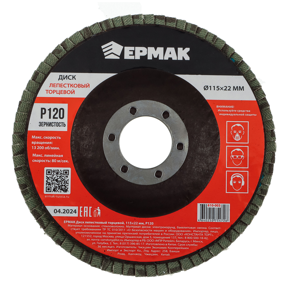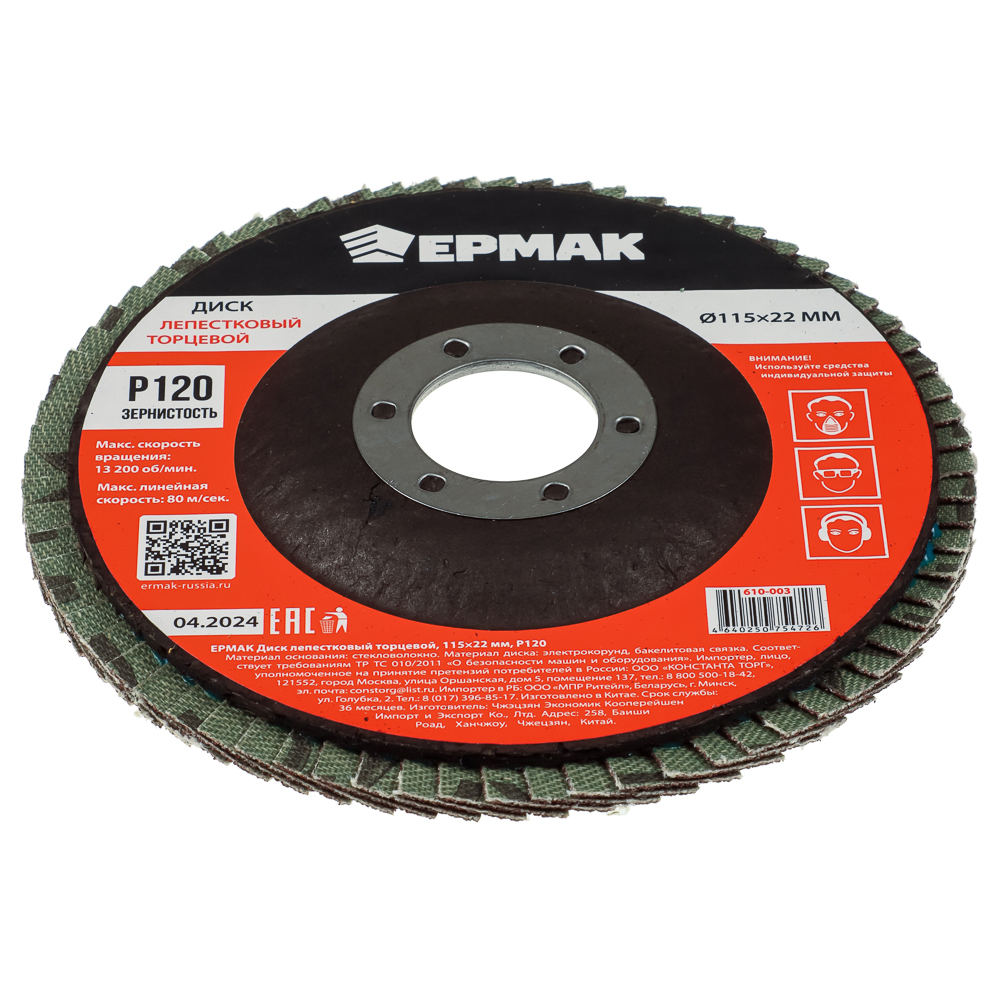 ЕРМАК Диск лепестковый торцевой 115x22мм p120