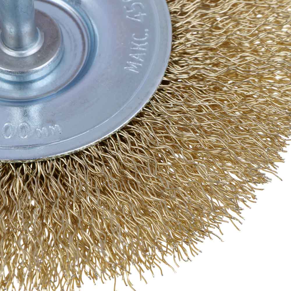 ЕРМАК Щетка дисковая для дрели, витая латунированная стальная проволока 0,3мм, 100мм