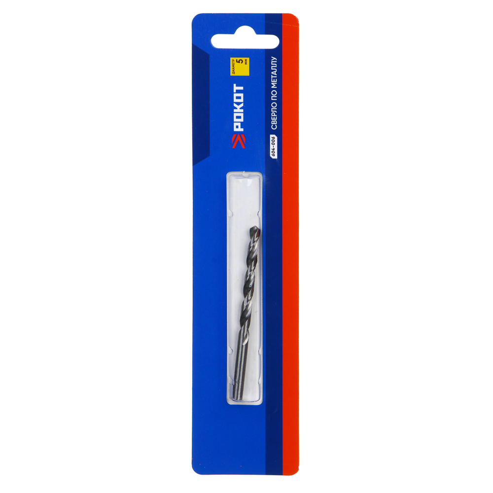 Сверло по металлу от бренда Рокот. Материал - быстрорежущая сталь. Это специальный сплав: твердый, выдерживает высокие температуры и устойчивый к разрушению. Диаметр сверла 5 мм.