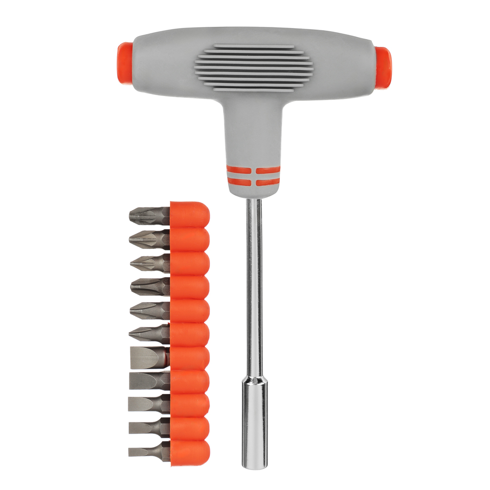 ЕРМАК Отвертка Т-образная с набором бит, 12 предметов
