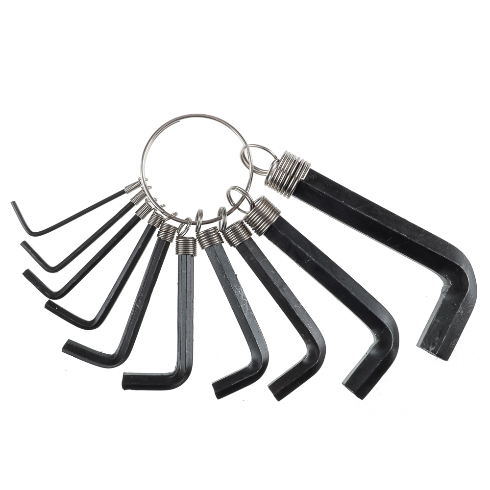 Если вы устали искать нужный вам по размеру шестигранник в огромной коробке с инструментами, то Вам просто необходим набор шестигранников! Все шестигранники соединены посредством кольца, чтобы весь набор всегда был под рукой. Ключи, выполненные из высококачественного металла, оптимизированы для работы в труднодоступных местах. Набор состоит из 10-ти шестигранников разного размера.