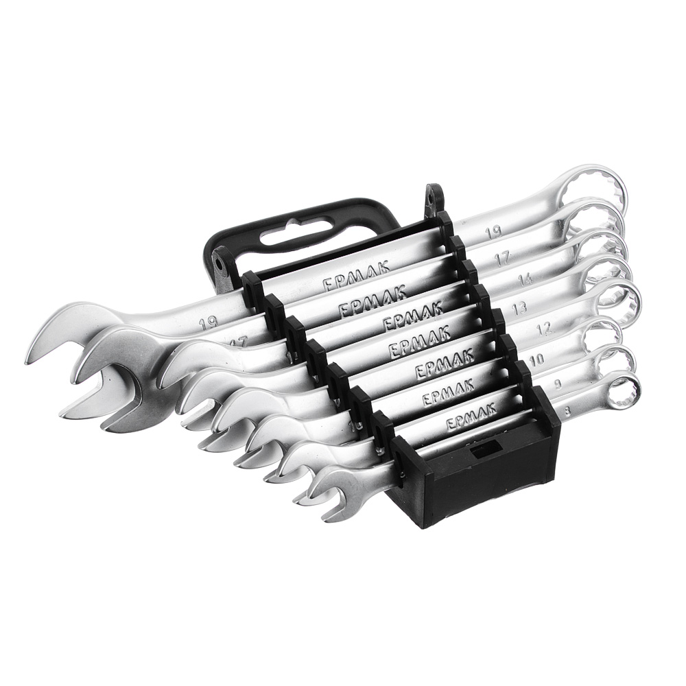 ЕРМАК Набор ключей рожково-накидных, 8 предм. 8-19мм, матовые CRV, пластик холдер