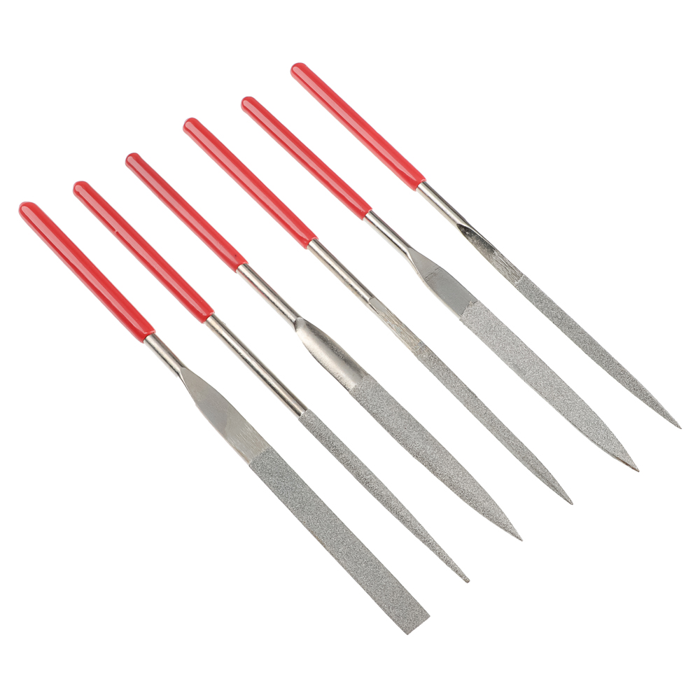 Набор надфилей алмазных РОКОТ предназначен для мелких слесарных работ: зачистки и подгонки деталей и отверстий, лекальных, ювелирных и граверных работ. Отличаются повышенной твердостью и износостойкостью. Подходят для всех форм поверхности и отлично справляются с особо твердыми материалами: металлом, стеклом. Удобные рукоятки выполнены из пластмассы. 6 шт. в блистере. Размер – 5х180 мм.