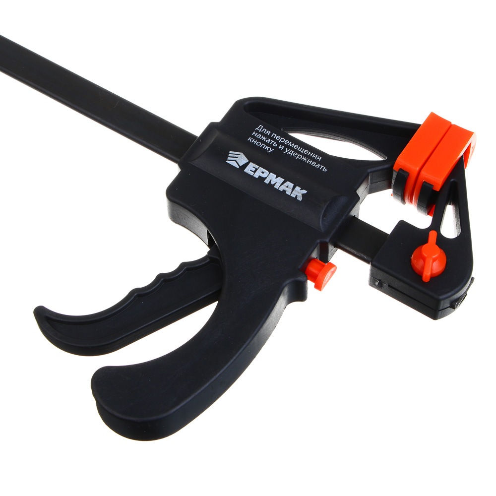 Универсальная F-образная струбцина ЕРМАК применяется в слесарных работах. Инструмент используется для зажатия и фиксации различных деталей и заготовок, а также для склеивания под нажимом. Фиксация и степень нажима регулируются кнопкой. Корпус выполнен из прочного пластика.