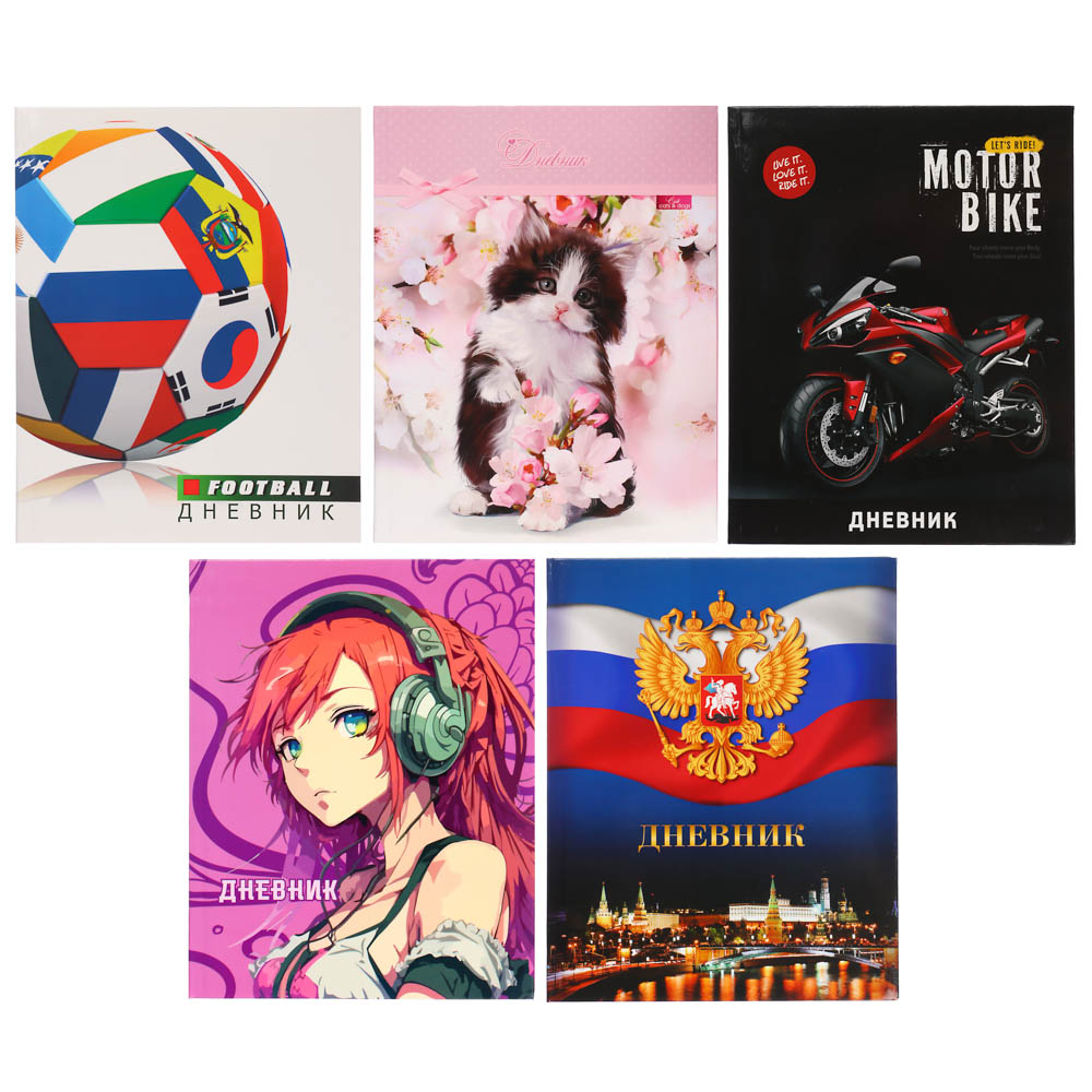 Дневник школьный для старших классов, 48л., гибкая интегральная обложка, блок офсет 60 г\м2, 5 диз.