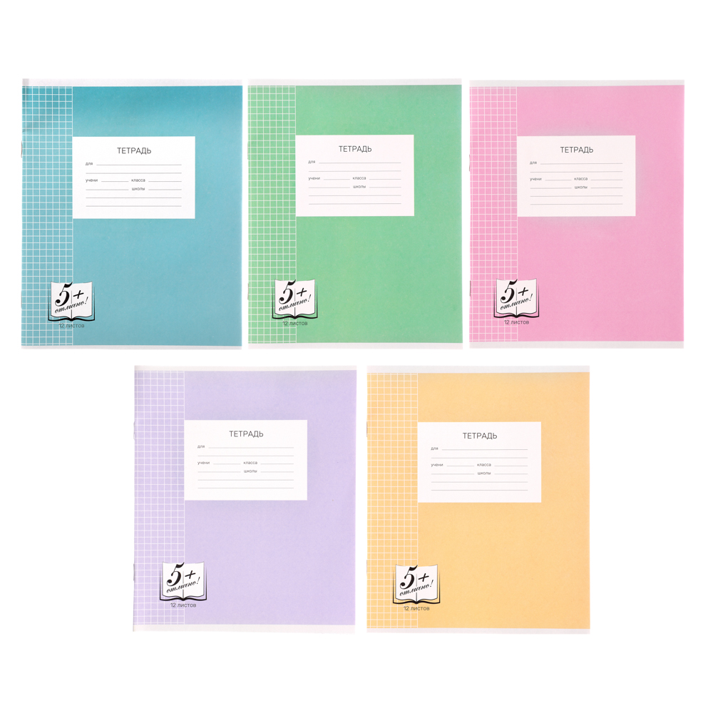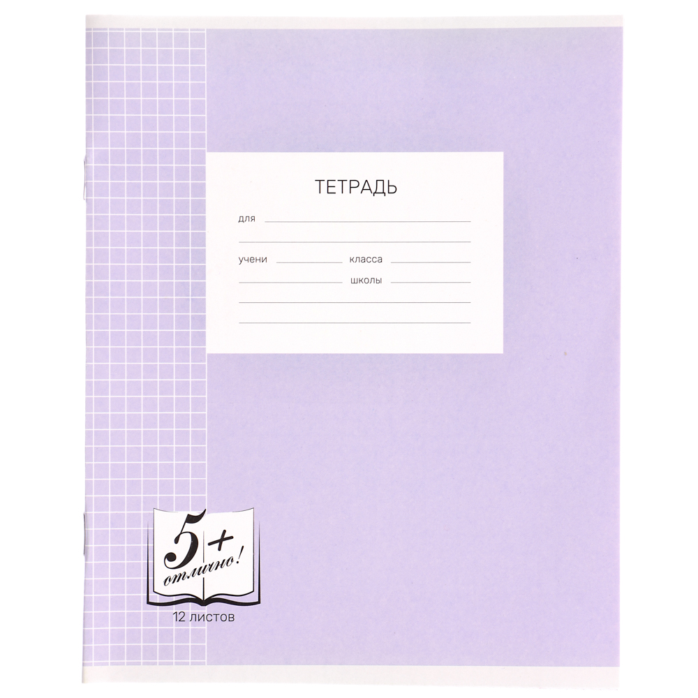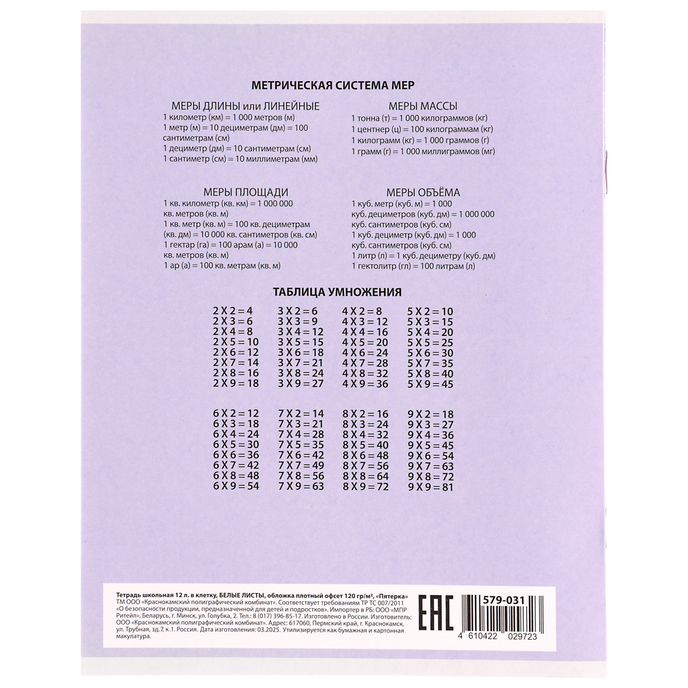 Тетрадь школьная 12л. в клетку, БЕЛЫЕ ЛИСТЫ обложка плотный офсет 120 гр "Пятерка"