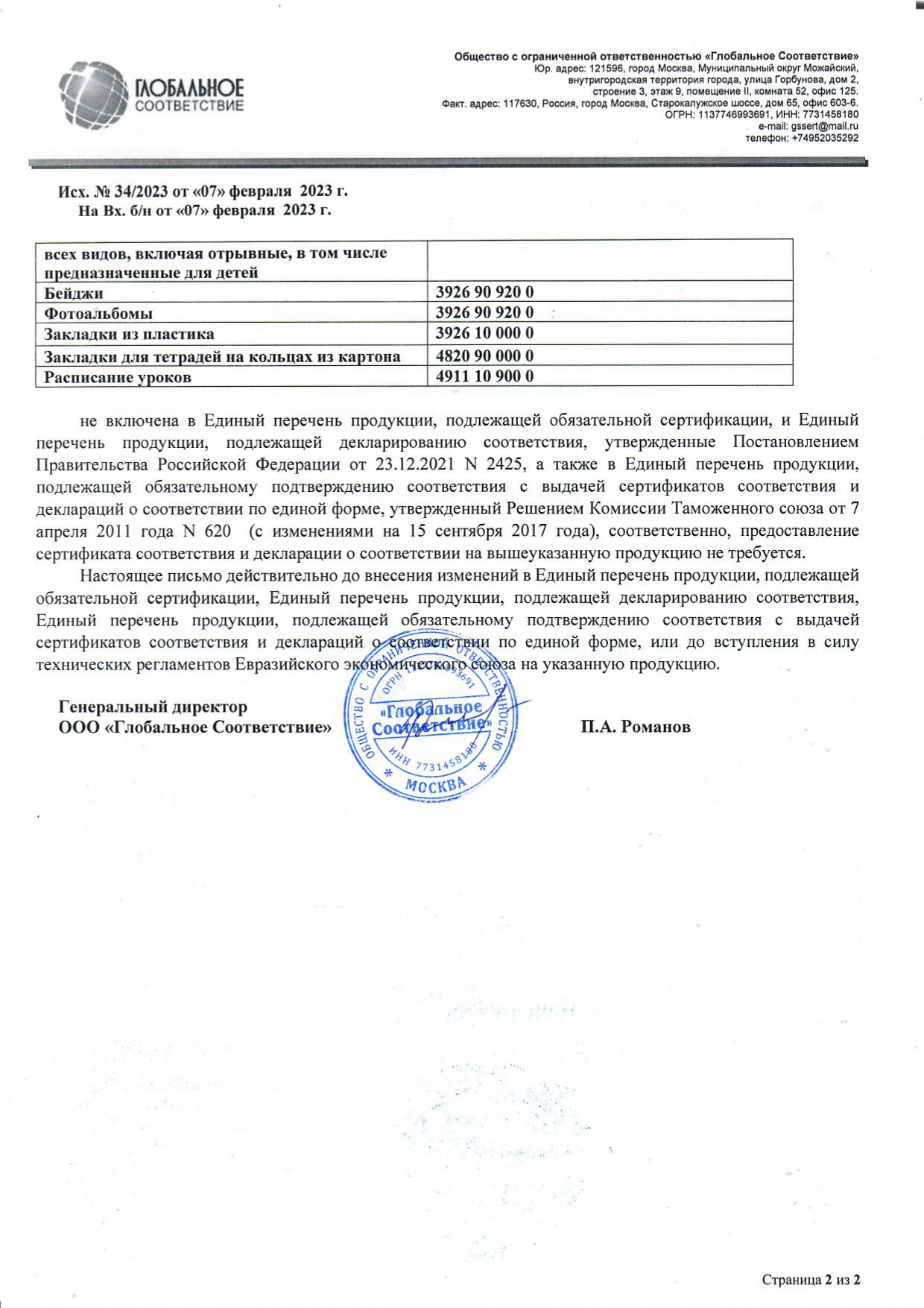 Размер упаковки