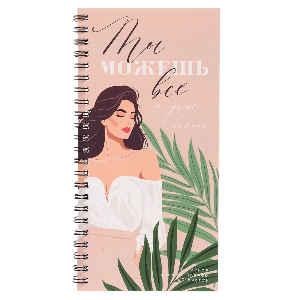 Записная книжка-планер ClipStudio формата 200х100 мм – компактный и стильный спутник для ежедневных заметок, списков дел или вдохновляющих мыслей. Внутри – 40 листов офсетной бумаги плотностью 60–65 г/м2. Блок скреплён металлической спиралью, что позволяет свободно разворачивать страницы на 360° и использовать книжку как плоскую поверхность. Дизайн обложки передаёт уверенность, вдохновение и женственность. Идеален для студентов, фрилансеров, мам или всех, кто ценит практичность, мотивацию и стиль в одном аксессуаре. Компактный, функциональный и эстетичный – ваш надёжный помощник в организации дня.