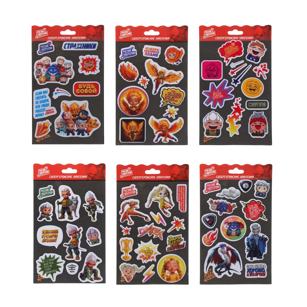 Наклейки "Русские Супергерои" 13х19см, пластик, микс 6 дизайнов
