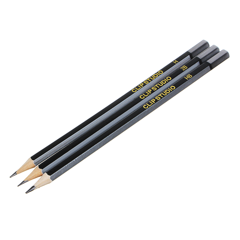 ClipStudio Карандаши чернографитные чертежные, 3 шт. (2B, HB, H), дерево, в пакете