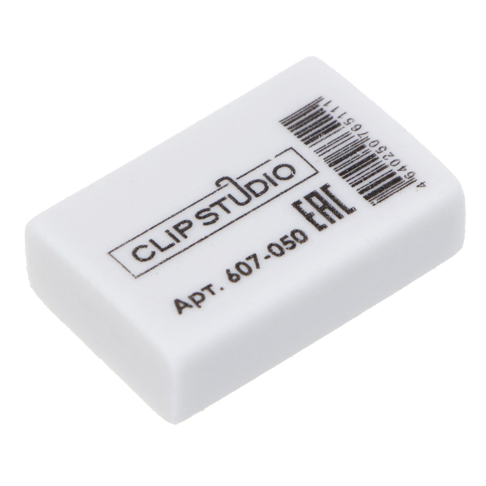 ClipStudio Ластик 2,6х1,8х0,8см, прямоугольный, белый, ТПР, инд. штрихкод