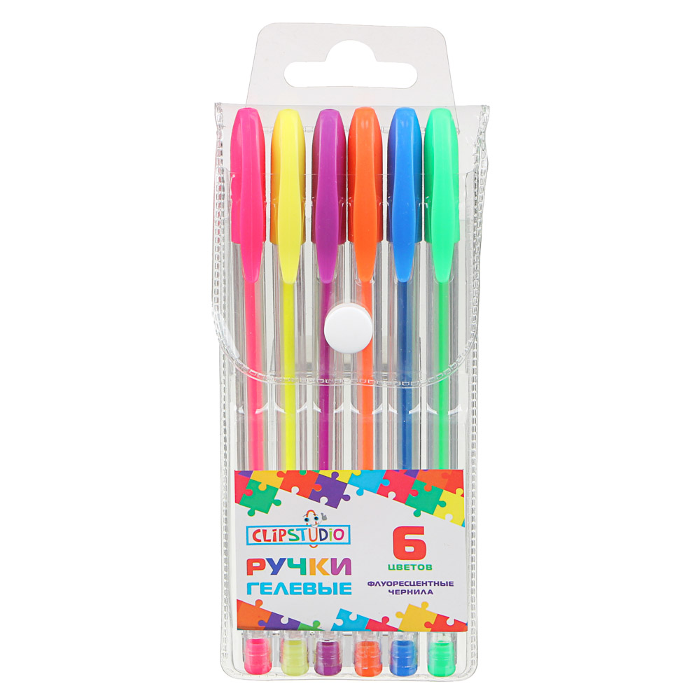 ClipStudio Набор ручек гелевых 6 цветов флуоресцентных, 0,7мм, в ПВХ пенале с подвесом