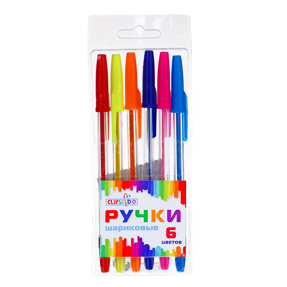 ClipStudio Набор ручек шариковых 6 цветов, 0,7 мм, в пакете с подвесом