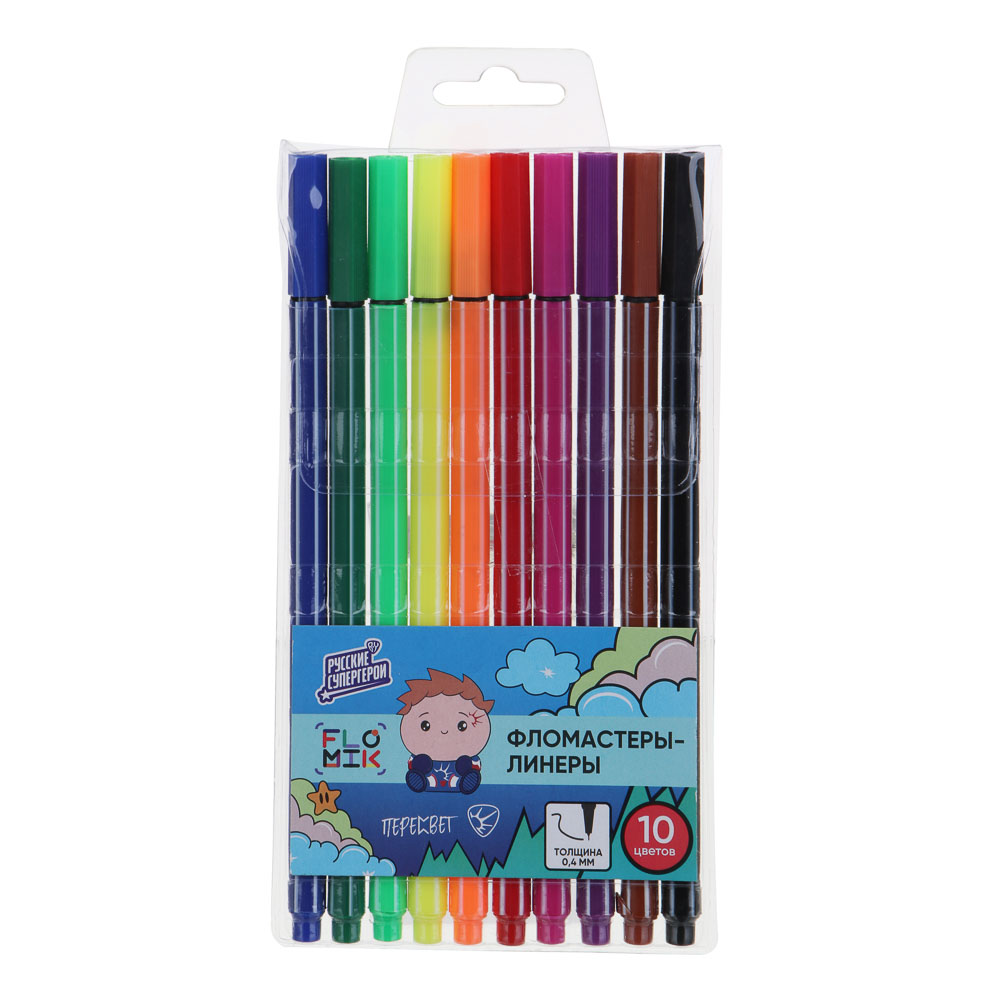 FLOMIK Набор фломастеров-линеров, 10 цветов, наконечник 0,4мм, ПВХ - пенал