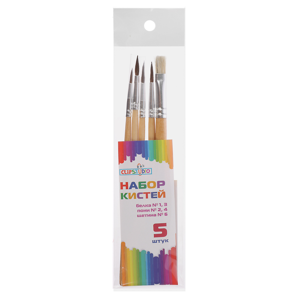 ClipStudio Набор кистей 5 шт: белка №1,3 волос пони № 2,4, щетина №6, в пакете с подвесом