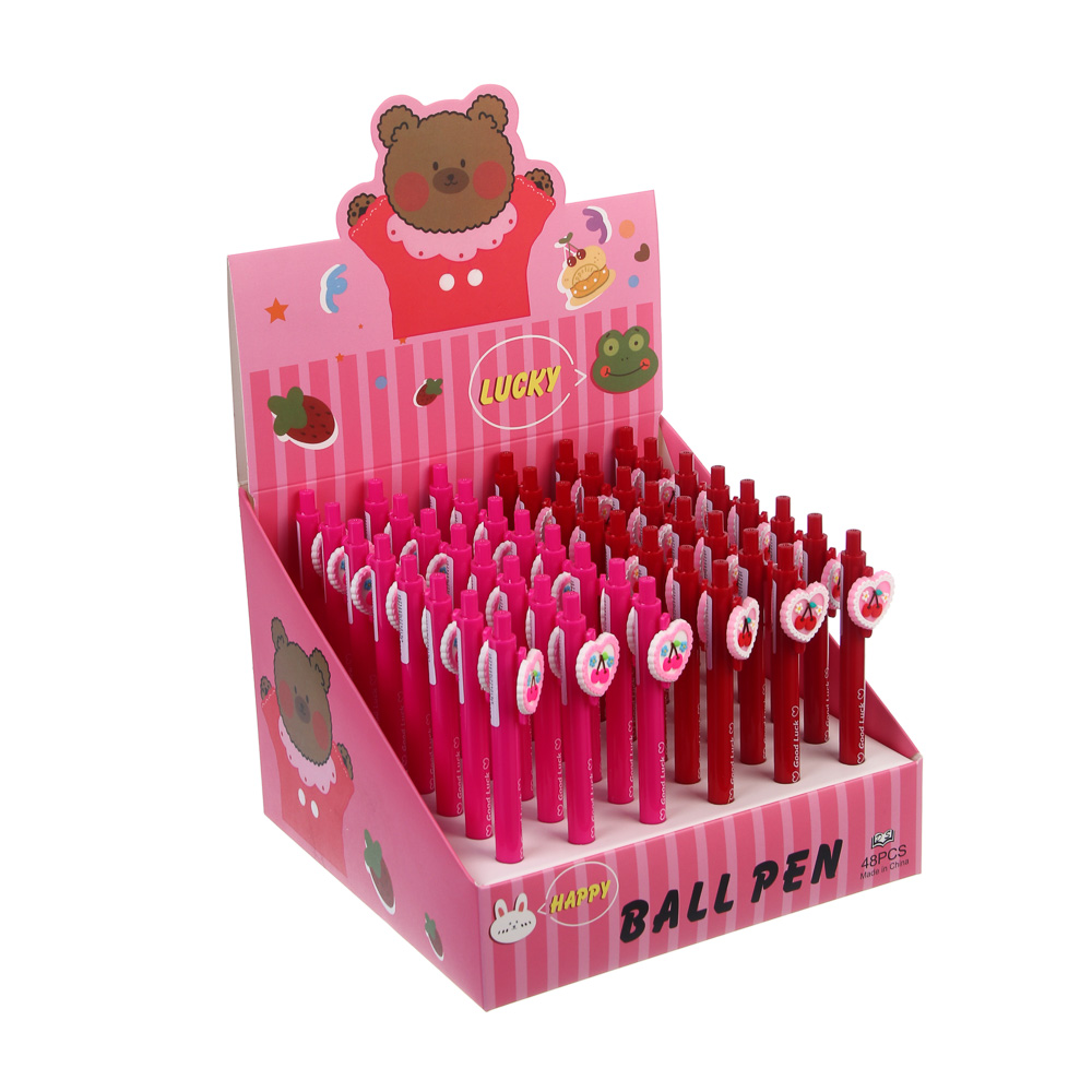 Ручка шариковая автоматическая синяя 0,7мм, "Вишенки", 2 вида, шоу-бокс