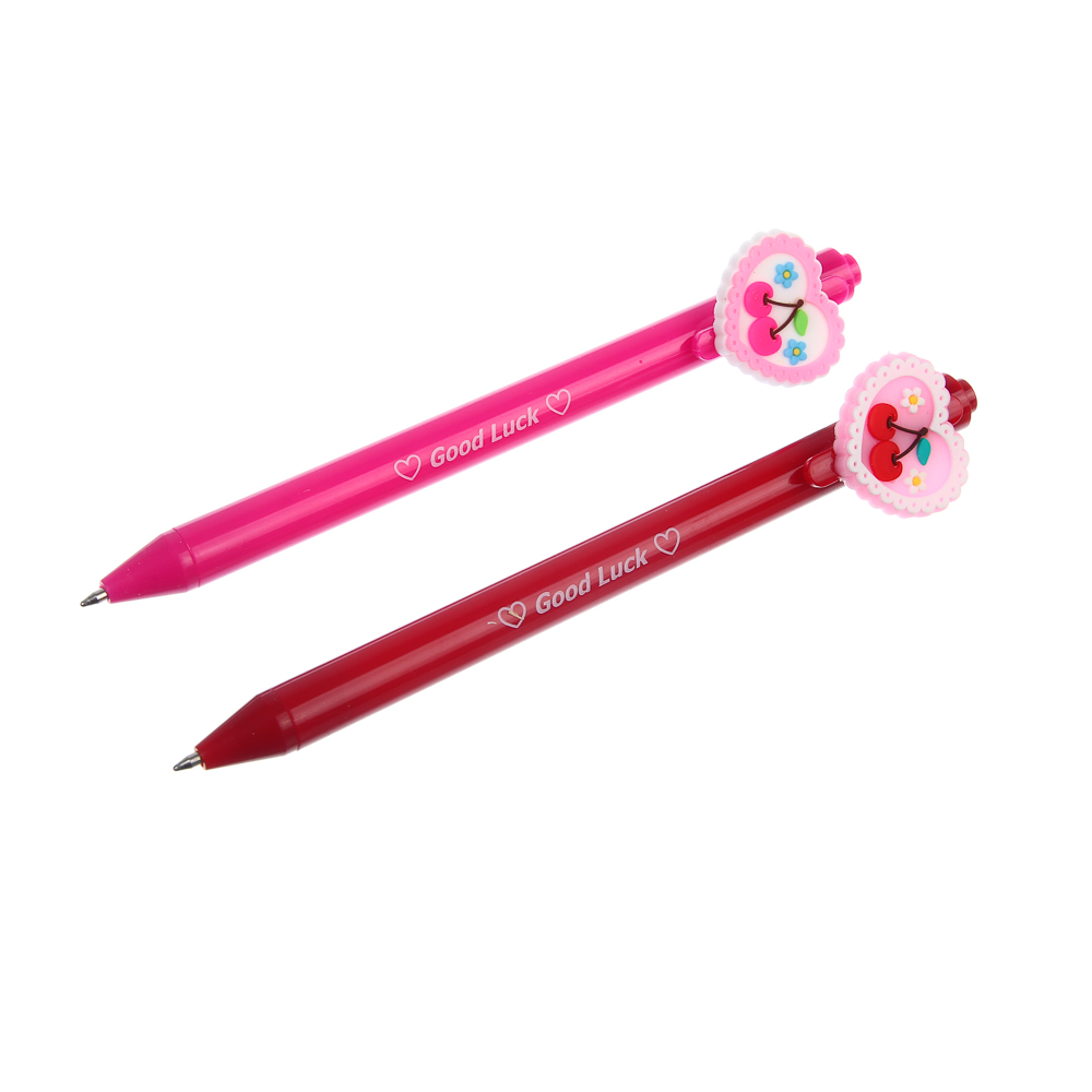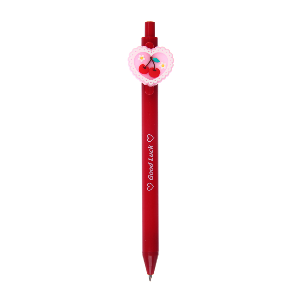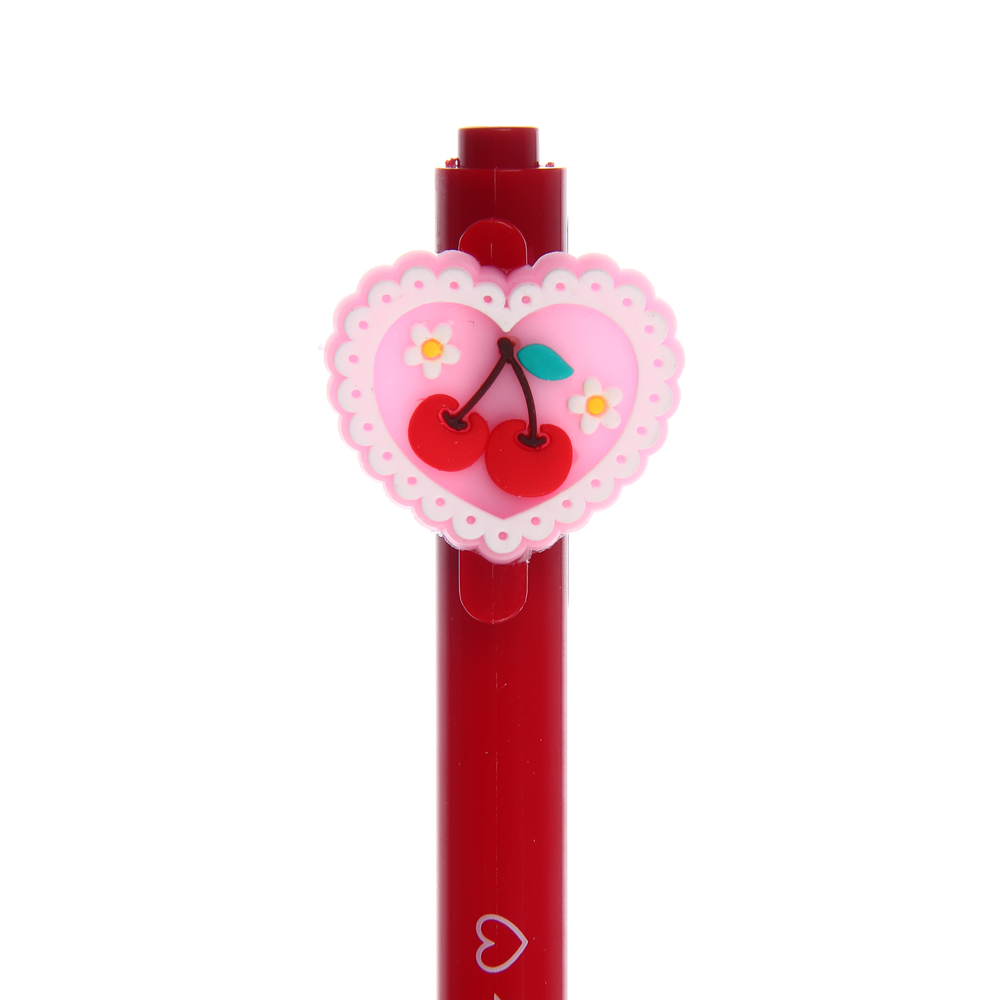 Ручка шариковая автоматическая синяя 0,7 мм, "Вишенки" имеет яркий выразительный и стильный дизайн с фигуркой в форме сердечка, украшенного вишенками. Прекрасный выбор для ценителей необычных аксессуаров, а также для коллекционеров письменных принадлежностей. Ручку также можно подарить подружке или однокласснице в качестве приятного сувенира. Стержень толщиной 0,7 мм пишет плавно и четко, не требуя сильного нажима на бумагу. Автоматический механизм без колпачка работает безотказно. 2 вида в ассортименте.