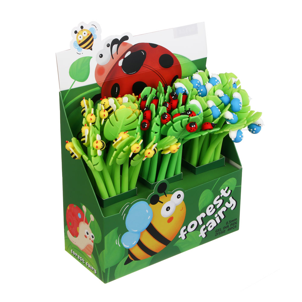 Ручка гелевая синяя 0,5мм, "Летний сад", гибкий силиконовый корпус, 3 дизайна, шоу-бокс