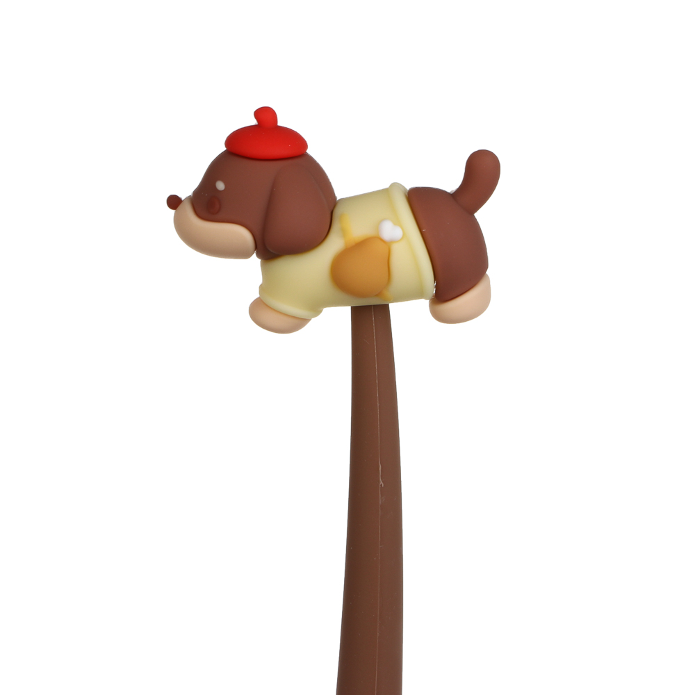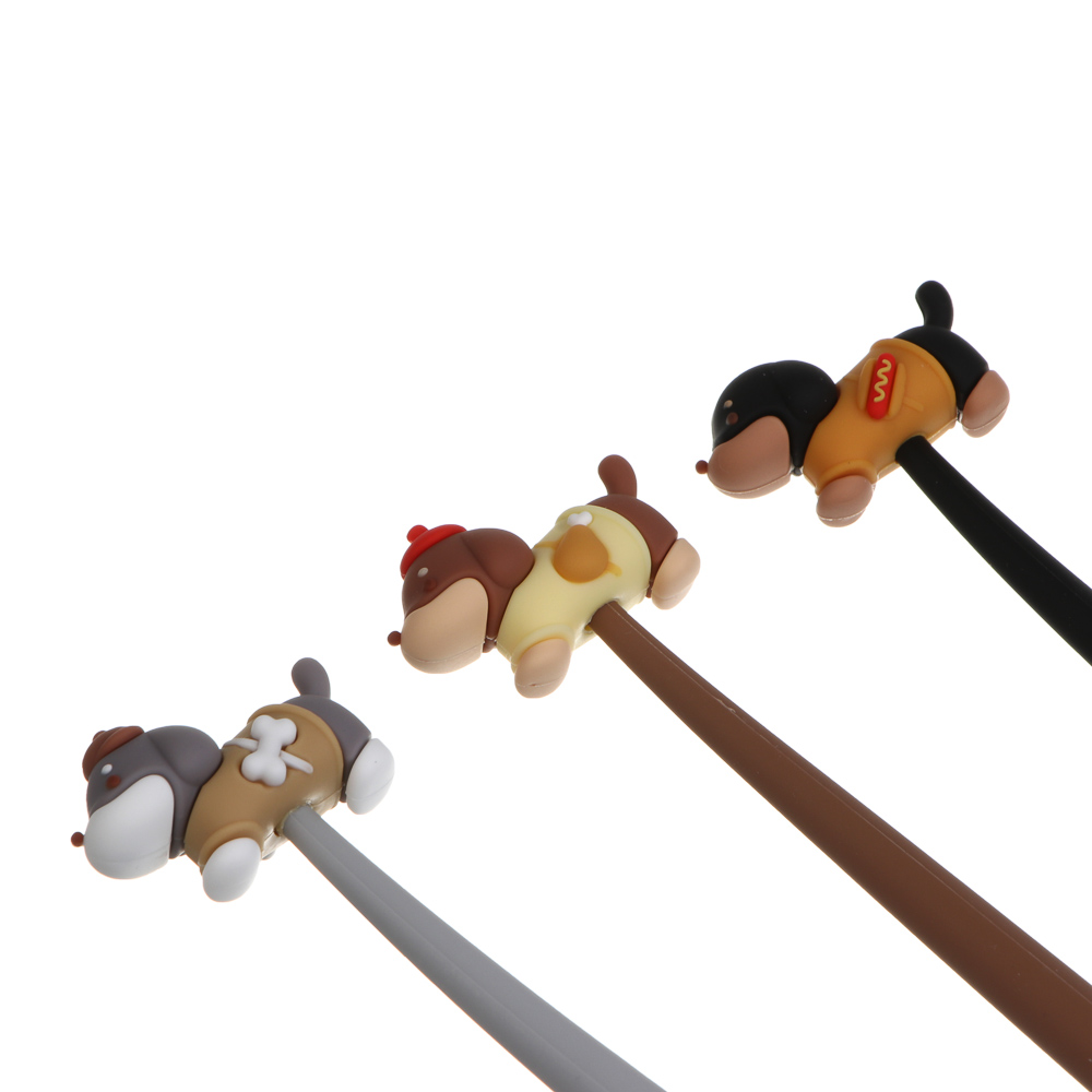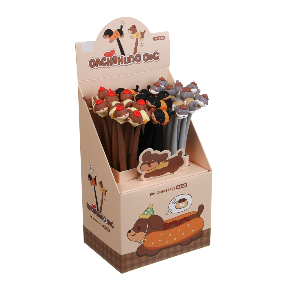 Ручка гелевая черная 0,5мм, гибкий корпус с фигуркой "Хот-Дог", 3 дизайна, шоу-бокс