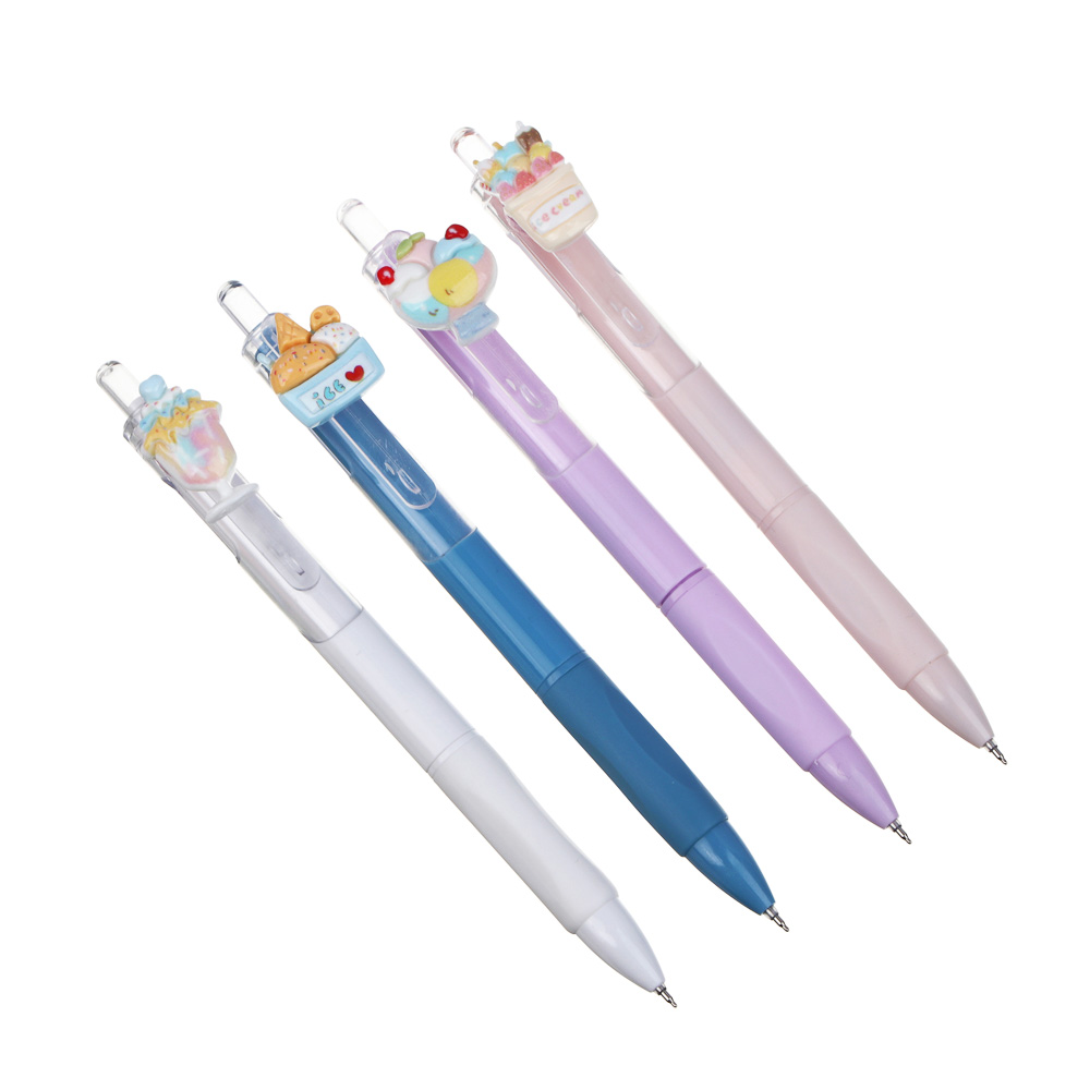 Авторучка гелевая синяя, вращающаяся фигурка на клипе "Сладости", антискользящая накладка, 4 дизайна